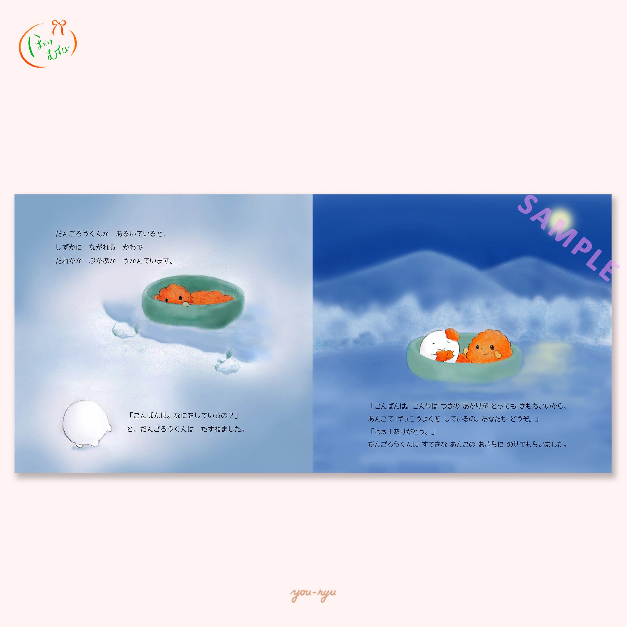 お月さまに住んでいるだんごろうくんは、月明かりに包まれる中、おさんぽに出かけることにしました。道中で出会うそっくりさん達にだんごろうくんはびっくり。