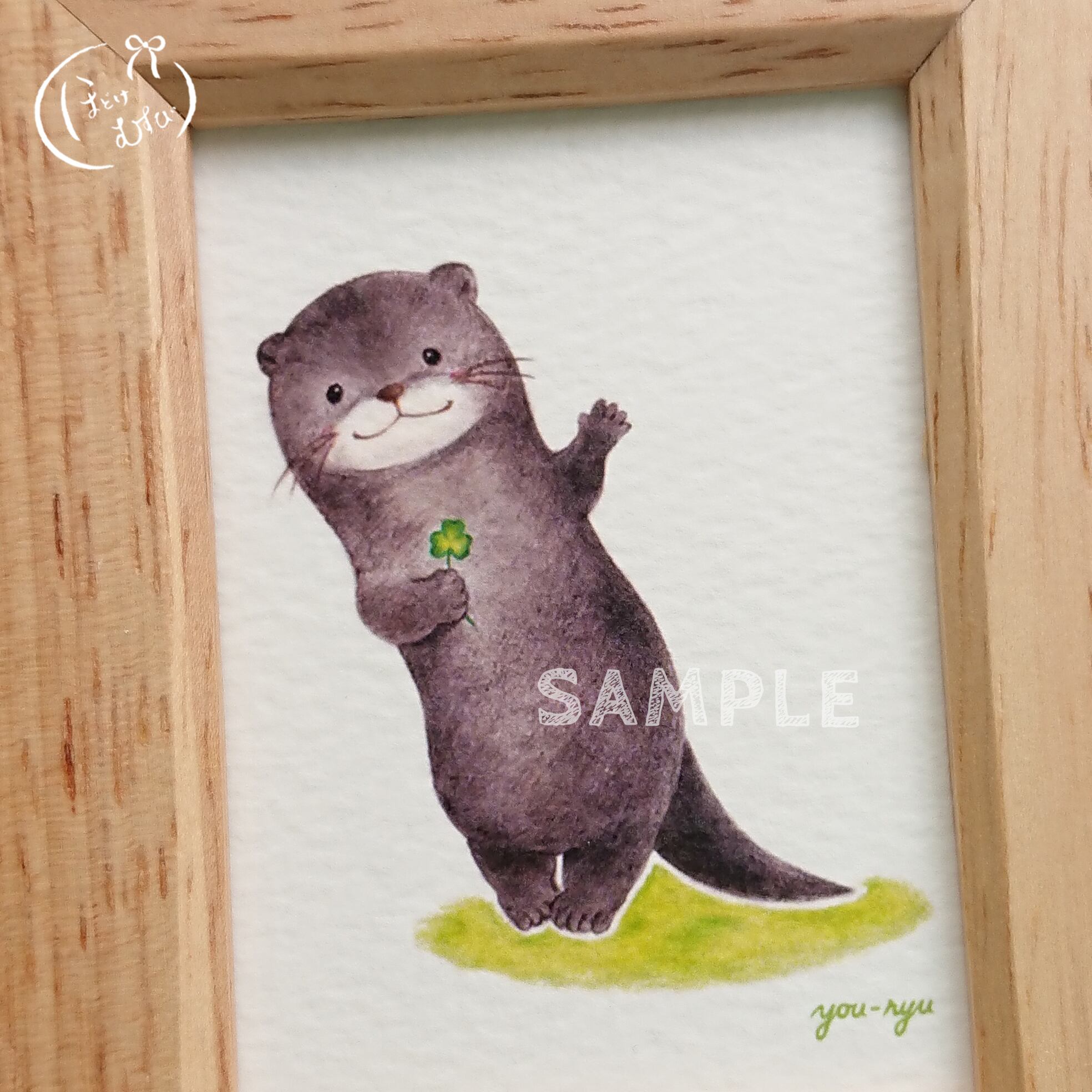 クローバーを片手に…カワウソちゃんのミニイラストです。